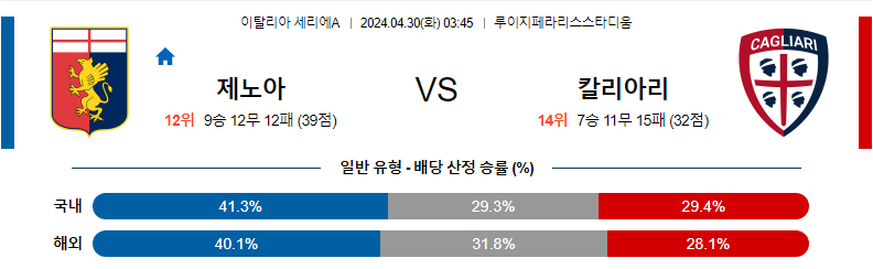 제노아 칼리아리 04월30일