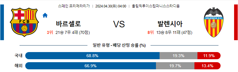 [킹콩티비] 04월 30일 바르셀로나 vs 발렌시아 라리가 생중계, 스포츠분석,스포츠중계