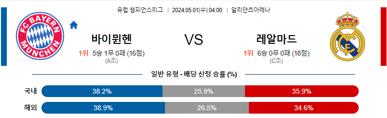 [킹콩티비] 05월 01일 바이에른뮌헨 vs 레알마드리드 챔피언스리그 생중계, 스포츠분석,스포츠중계