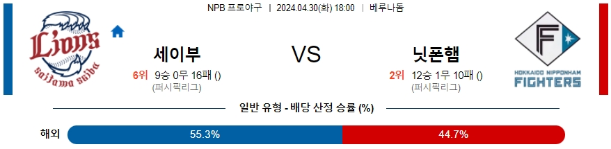 [킹콩티비] 04월 30일 세이부 vs 니혼햄 NPB 생중계, 스포츠분석,스포츠중계