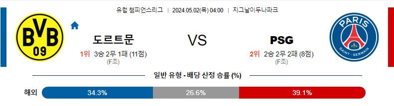 [킹콩티비] 05월 02일 도르트문트 vs 파리생제르맹 챔피언스리그 생중계, 스포츠분석,스포츠중계