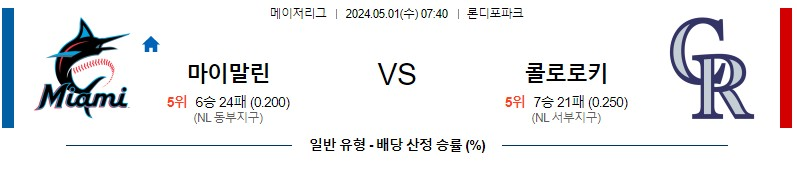 마이애미 콜로라도 야구분석