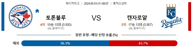 [킹콩티비] 05월 01일 토론토 vs 캔자스시티 MLB 생중계, 스포츠분석,스포츠중계