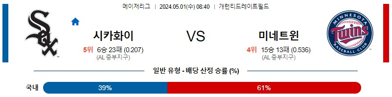 [킹콩티비] 05월 01일 화이트삭스 vs 미네소타 MLB 생중계, 스포츠분석,스포츠중계