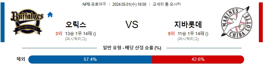 [킹콩티비] 05월 01일 오릭스 vs 치바롯데 NPB 생중계, 스포츠분석,스포츠중계