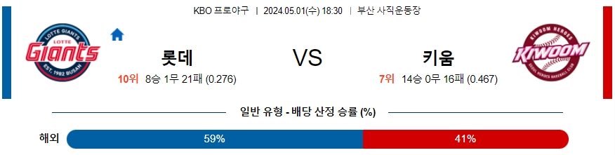 [킹콩티비] 05월 01일 롯데 vs 키움 KBO 생중계, 스포츠분석,스포츠중계