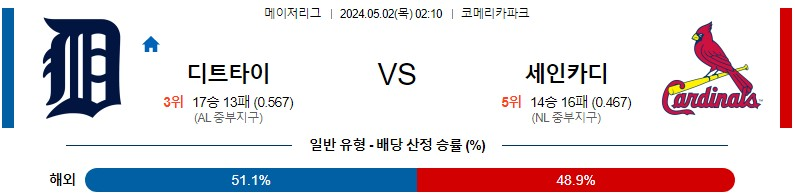 [킹콩티비] 05월 02일 디트로이트 vs 세인트루이스 MLB 생중계, 스포츠분석,스포츠중계