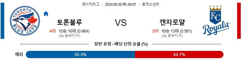 [킹콩티비] 05월 02일 토론토 vs 캔자스시티 MLB 생중계, 스포츠분석,스포츠중계