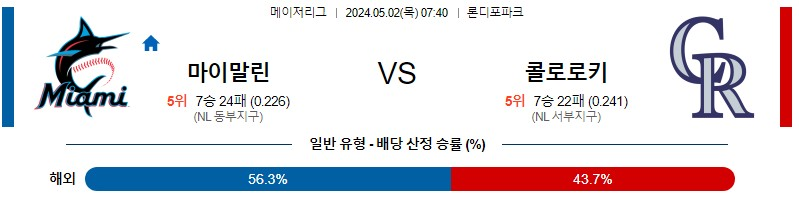 [킹콩티비] 05월 02일 마이애미 vs 콜로라도 MLB 생중계, 스포츠분석,스포츠중계