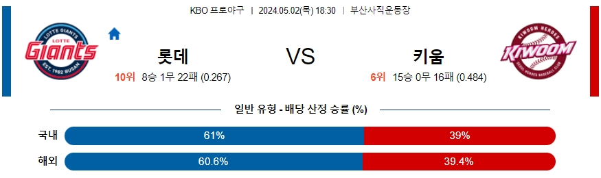 [킹콩티비] 05월 02일 롯데 vs 키움 KBO 생중계, 스포츠분석,스포츠중계