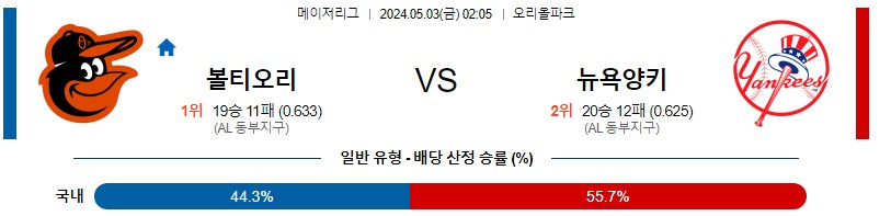 [킹콩티비] 05월 03일 볼티모어 vs 양키스 MLB 생중계, 스포츠분석,스포츠중계