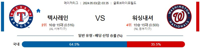 [킹콩티비] 05월 03일 텍사스 vs 워싱턴 MLB 생중계, 스포츠분석,스포츠중계