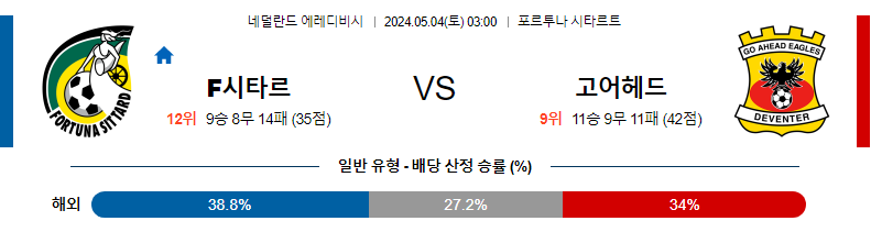 [킹콩티비] 05월 04일 시타르트 vs 고어헤드 에레디비시 생중계, 스포츠분석,스포츠중계