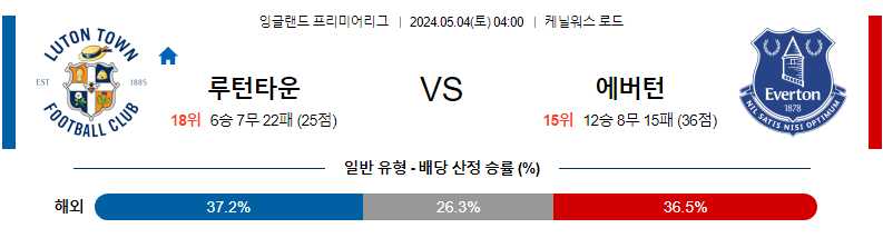 [킹콩티비] 05월 04일 루턴 vs 에버튼 EPL 생중계, 스포츠분석,스포츠중계