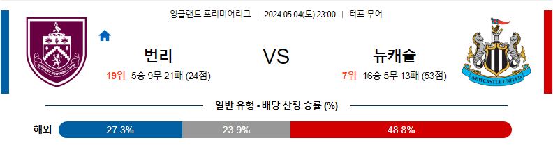 [킹콩티비] 05월 04일 번리 vs 뉴캐슬 EPL 생중계, 스포츠분석,스포츠중계