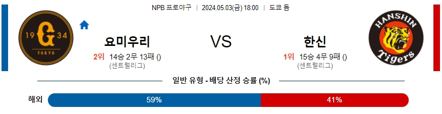 [킹콩티비] 05월 03일 요미우리 vs 한신 NPB 생중계, 스포츠분석,스포츠중계