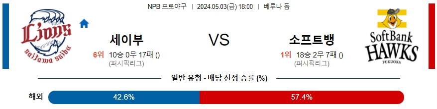 [킹콩티비] 05월 03일 세이부 vs 소프트뱅크 NPB 생중계, 스포츠분석,스포츠중계