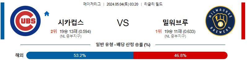 [킹콩티비] 05월 04일 컵스 vs 밀워키 MLB 생중계, 스포츠분석,스포츠중계