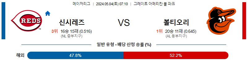 [킹콩티비] 05월 04일 신시내티 vs 볼티모어 MLB 생중계, 스포츠분석,스포츠중계