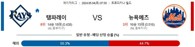 [킹콩티비] 05월 04일 템파베이 vs 메츠 MLB 생중계, 스포츠분석,스포츠중계