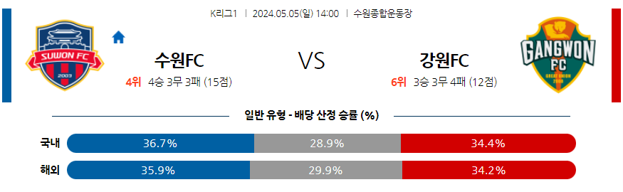 하지만 올 시즌 강원은 상당히 공격적인 팀. 강원의 공세를 수원Fc가 막아내는 양상이 유력하다.
