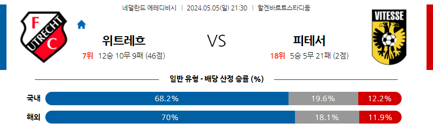 [킹콩티비] 05월 05일 위트레흐트 vs 비테세 에레디비시 생중계, 스포츠분석,스포츠중계