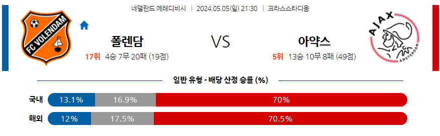 [킹콩티비] 05월 05일 볼렌담 vs 아약스 에레디비시 생중계, 스포츠분석,스포츠중계