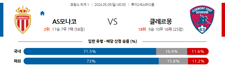 [킹콩티비] 05월 05일 AS모나코 vs 클레르몽 리그1 생중계, 스포츠분석,스포츠중계