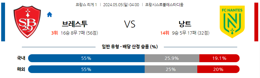 [킹콩티비] 05월 05일 브레스트 vs 낭트 리그1 생중계, 스포츠분석,스포츠중계