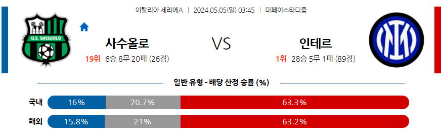 [킹콩티비] 05월 05일 사수올로 vs 인터밀란 세리에A 생중계, 스포츠분석,스포츠중계