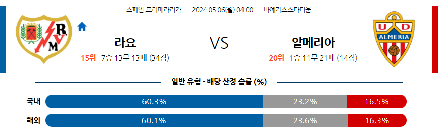 [킹콩티비] 05월 06일 라요바예카노 vs 알메리아 라리가 생중계, 스포츠분석,스포츠중계