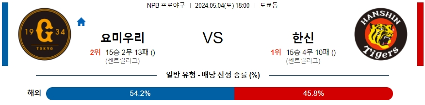 [킹콩티비] 05월 04일 요미우리 vs 한신 NPB 생중계, 스포츠분석,스포츠중계