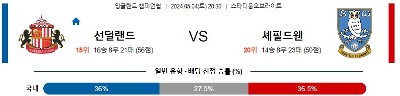 [킹콩티비] 05월 04일 선덜랜드 vs 셰필드웬즈데이 챔피언쉽 생중계, 스포츠분석,스포츠중계