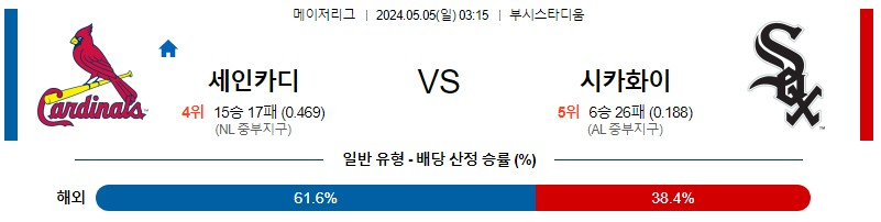 [킹콩티비] 05월 05일 세인트루이스 vs 화이트삭스 MLB 생중계, 스포츠분석,스포츠중계