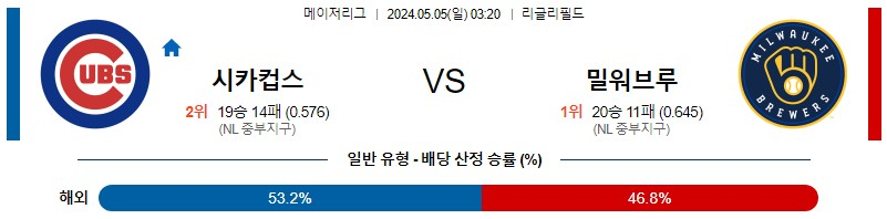 [킹콩티비] 05월 05일 컵스 vs 밀워키 MLB 생중계, 스포츠분석,스포츠중계