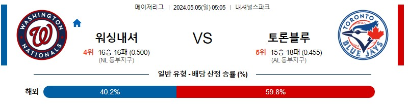 [킹콩티비] 05월 05일 워싱턴 vs 토론토 MLB 생중계, 스포츠분석,스포츠중계