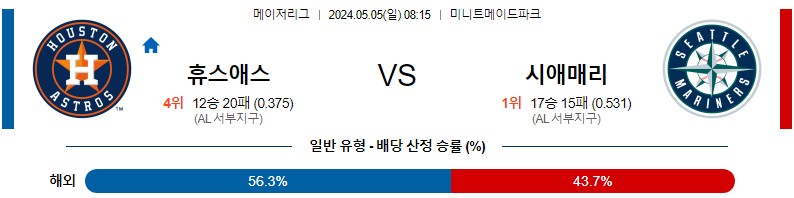 [킹콩티비] 05월 05일 휴스턴 vs 시애틀 MLB 생중계, 스포츠분석,스포츠중계
