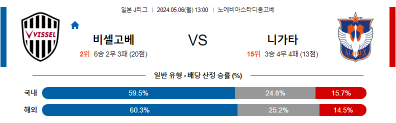 [킹콩티비] 05월 06일 비셀고베 vs 니가타 J리그 생중계, 스포츠분석,스포츠중계