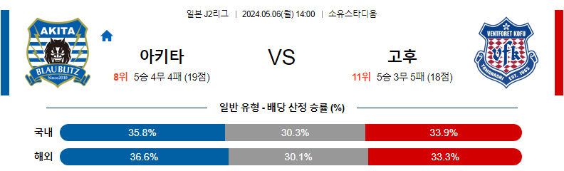 [킹콩티비] 05월 06일 아키타 vs 고후 J2리그 생중계, 스포츠분석,스포츠중계