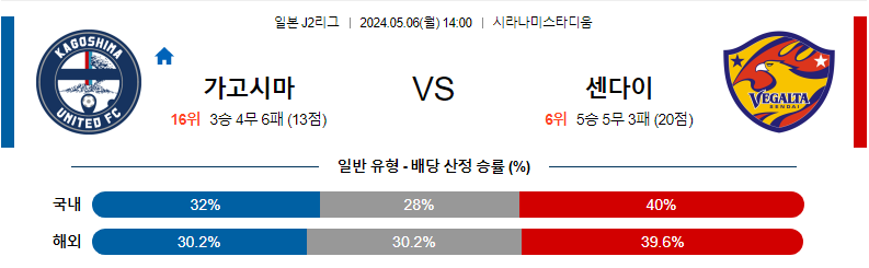 [킹콩티비] 05월 06일 가고시마 vs 센다이 J2리그 생중계, 스포츠분석,스포츠중계