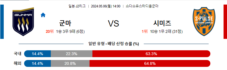 [킹콩티비] 05월 06일 군마 vs 시미즈 J2리그 생중계, 스포츠분석,스포츠중계