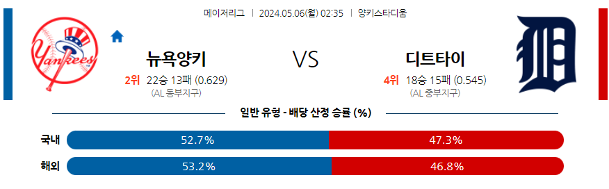 [킹콩티비] 05월 06일 뉴욕양키스 vs 디트로이트 MLB 생중계, 스포츠분석,스포츠중계