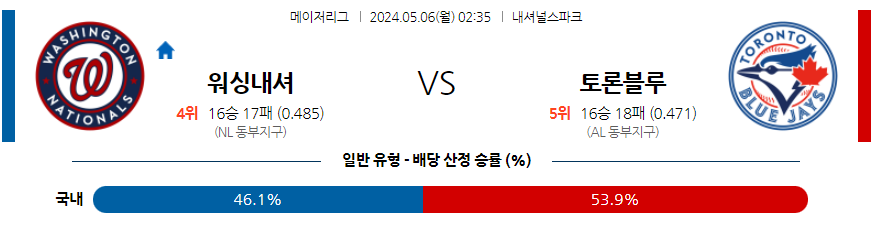 [킹콩티비] 05월 06일 워싱턴 vs 토론토 MLB 생중계, 스포츠분석,스포츠중계