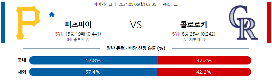 [킹콩티비] 05월 06일 피츠버그 vs 콜로라도 MLB 생중계, 스포츠분석,스포츠중계