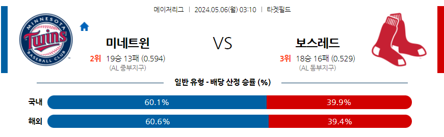 [킹콩티비] 05월 06일 미네소타 vs 보스턴 MLB 생중계, 스포츠분석,스포츠중계