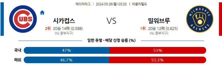 [킹콩티비] 05월 06일 시카고C vs 밀워키 MLB 생중계, 스포츠분석,스포츠중계