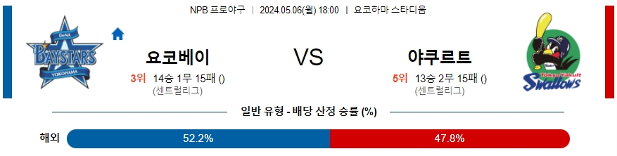 [킹콩티비] 05월 06일 요코하마 vs 야쿠르트 NPB 생중계, 스포츠분석,스포츠중계