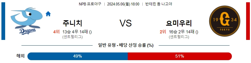 [킹콩티비] 05월 06일 주니치 vs 요미우리 NPB 생중계, 스포츠분석,스포츠중계