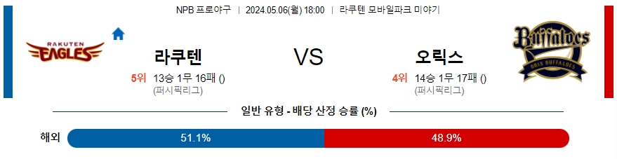 [킹콩티비] 05월 06일 라쿠텐 vs 오릭스 NPB 생중계, 스포츠분석,스포츠중계