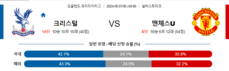 [킹콩티비] 05월 07일 크리스탈팰리스 vs 맨유 EPL 생중계, 스포츠분석,스포츠중계